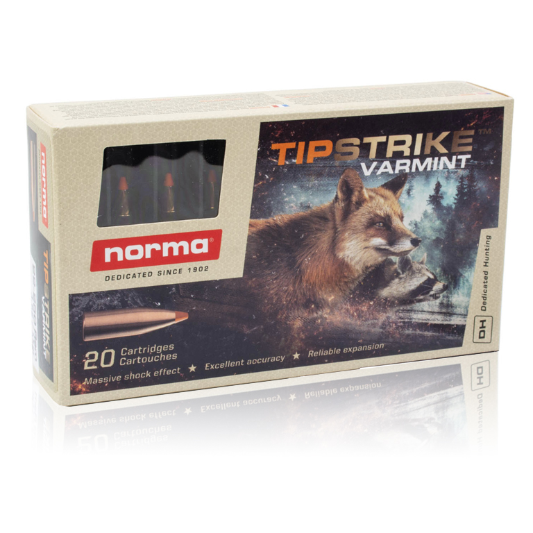 The Norma TipStrike Varmint .223 Remington 55 gr is a high-performance round tailored for varmint and predator hunting: